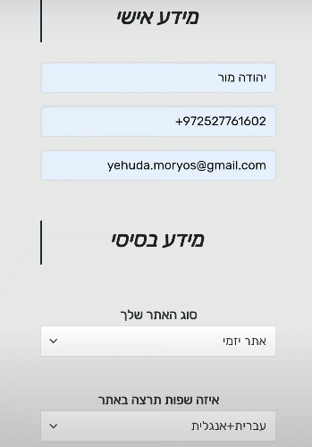 סוג האתר שלך