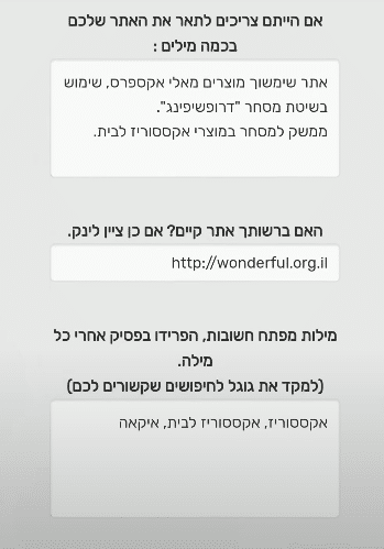 אם הייתם צריכים לתאר את האתר שלכם בכמה מילים :