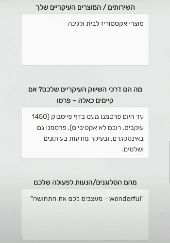 השירותים / המוצרים העיקריים שלך