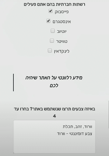 באיזה צבעים תרצו שנשתמש באתר? בחרו עד 4