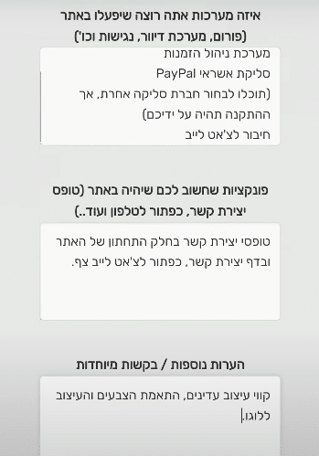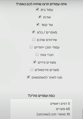 איזה עמודים תרצו שיהיה לכם באתר?